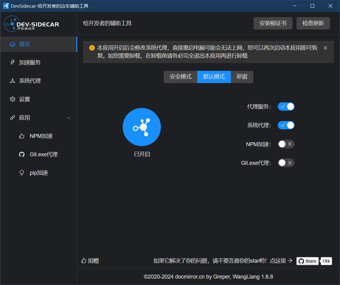 项目路径:docmirror/dev-sidecar: 开发者边车,github打不开,github加速,git clone加速,git release下载加速,stackoverflow加速